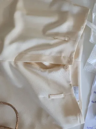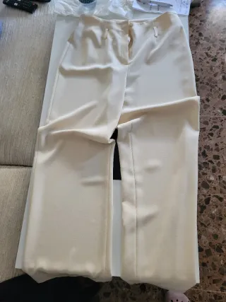 Pantalón de vestir de corte recto. - Tejido ligero y fluido. - Cintura con trabillas. - Cierre de cremallera y botón. - Largo: 98cm - Cintura: 38cm