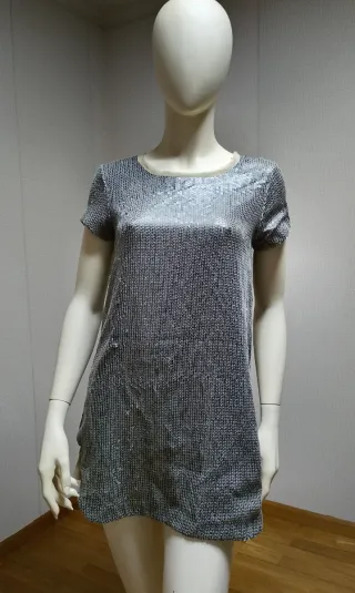 Vestido corto de Zara en color gris perla. Ideal para cualquier ocasión. - Diseño sin mangas. - Cremallera oculta en la espalda. - Tejido con un ligero brillo.