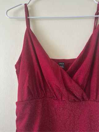 Vestido rojo de tejido acanalado con tirantes finos. Su diseño ajustado realza la figura. Se adaptaría a una M también ya que es elástico - Tirantes finos. - Tejido acanalado. - Diseño ajustado.