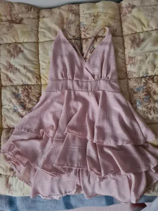 Vestido elegante de color rosa con un diseño fruncido. -Es precioso,está nuevo - Escote pronunciado. - Detalle de tirantes.Envios rápidos