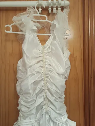 Vestido blanco de H&M con tirantes finos y escote fruncido. La cintura está marcada con elástico. - Diseño con elástico en la cintura. - Falda con caída. - Tejido ligero.