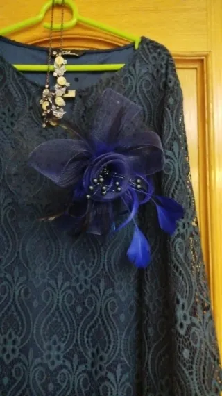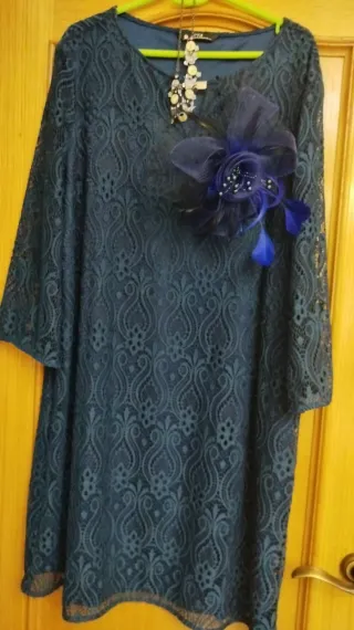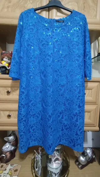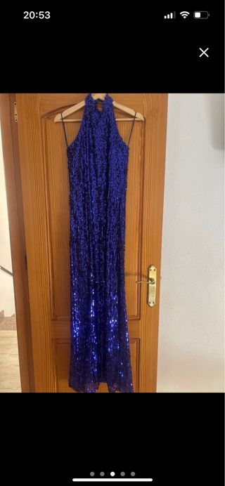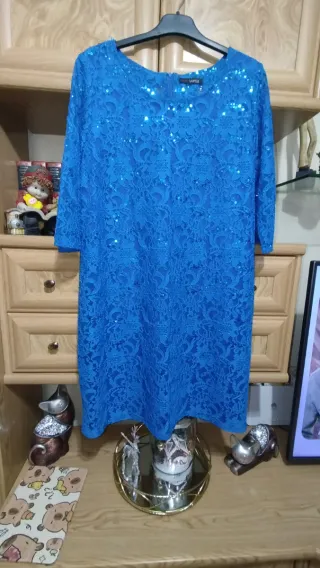 Precioso vestido de fiesta con un vibrante color azul. Su diseño es elegante y favorecedor. Es de la talla S pero vale para M o para l justa - Talla S (36/8). - Tejido con un ligero brillo satinado.