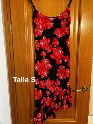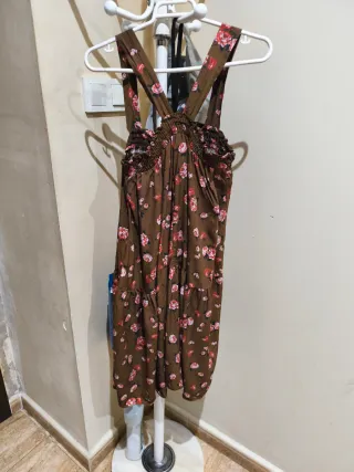 Vestido de mujer con un bonito estampado floral. - Diseño con tirantes cruzados. - Cuerpo fruncido. - Falda escalonada. - Aún que sea talla única el vestido tiene gomina en la zona de la clavícula y también por la zona de las caderas.