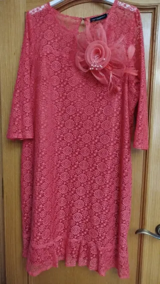 Vestido de encaje con un diseño intrincado y elegante. - Manga larga. - Escote en V. - Largo hasta la rodilla. - Acabado festoneado en el bajo.