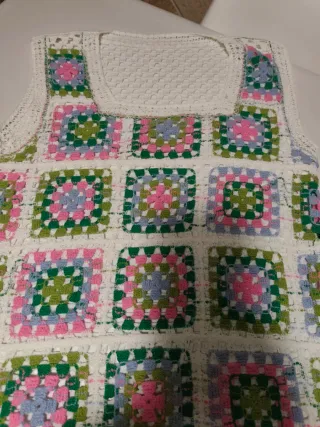 Vestido de crochet hecho a mano con el clásico diseño de granny squares. Es una prenda única y colorida. - Diseño de cuadrados. - Acabado calado. - Talla única.