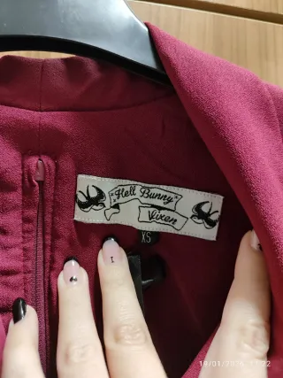 Vestido corto con un diseño llamativo y elegante. - Tejido brillante con acabado metalizado. - Detalle de volantes en la falda. - Mangas largas abullonadas. Tiene cocos