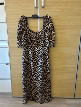 Vestido midi de Zara con un llamativo estampado de leopardo. Usado dos veces Presenta un diseño favorecedor y moderno. - Escote corazón. - Mangas abullonadas. - Largo midi.