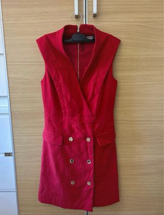 Vestido midi de la marca Morgan en color rojo. Usado en dos ocasiones Alta calidad - Diseño cruzado con solapa. - Doble abotonadura frontal. - Bolsillos de solapa.