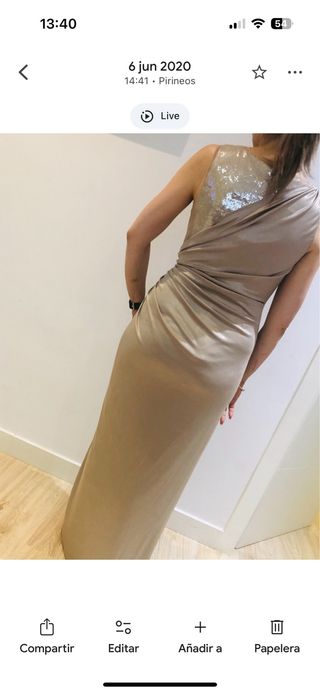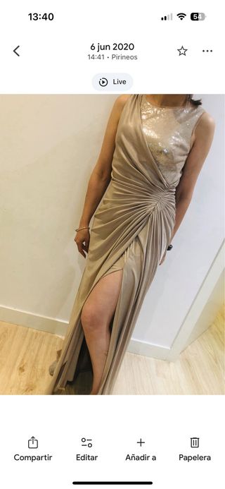 Vestido largo beige/dorado con lentejuelas