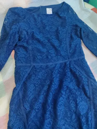 Vestido azul encaje manga codo forrado
