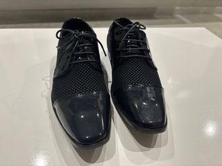Elegantes zapatos de vestir de color azul marino, perfectos para ocasiones especiales. Presentan un diseño moderno con detalles texturizados y acabado brillante en la punta. - Material exterior con patrón texturizado. - Punta y talón con acabado brillante. - Cierre de cordones. -La talla es un 41 pero tallan grandes valdrian para un 42