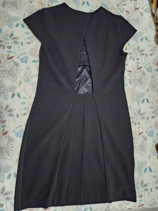 Vestido negro con forro , de corte entallado, talla S por 4€ .ideal para eventos en estás fiestas - Tirantes finos con detalle. - Escote en V. - Largo hasta la rodilla.