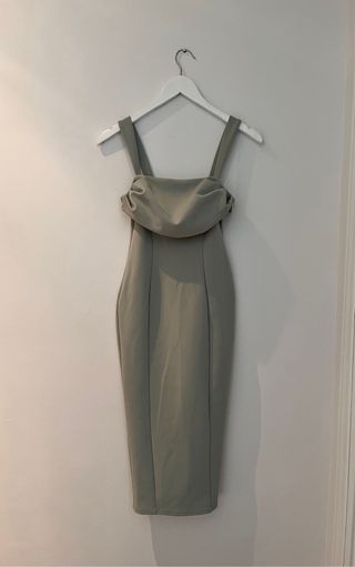 Vestido de ASOS en un bonito tono verde oliva. Presenta un diseño elegante y moderno. - Tirantes finos. - Escote drapeado. - Corte ajustado.