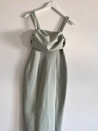 Elegante vestido de fiesta de Zara, ideal para eventos especiales. - Diseño sin mangas. - Drapeado frontal. - Corte midi.