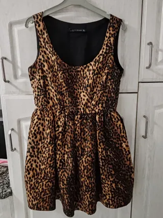 Vestido con estampado de leopardo de Zara. - Diseño sin mangas. - Falda mini con vuelo.