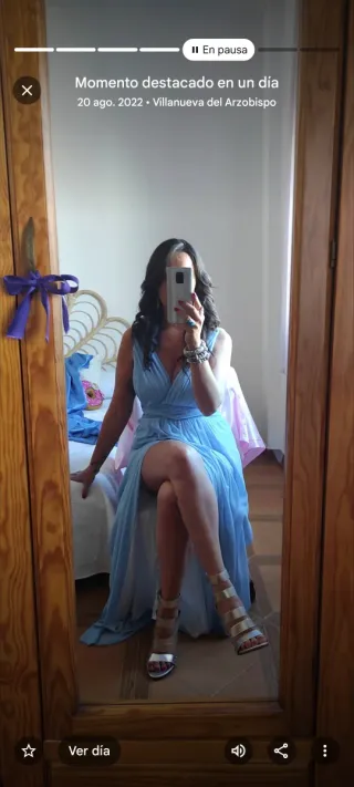 Elegante vestido de fiesta. Usado una vez. Tiene una mancha en la parte inferior del vestido como se ve en la foto, pero quién sea apañada con la limpieza lo podrá quitar.