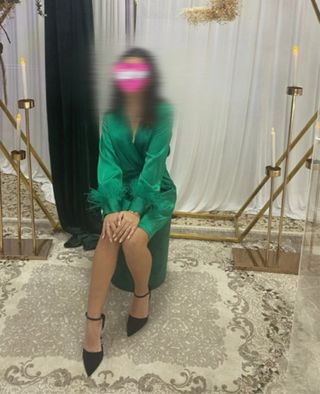 Elegante vestido de Zara con un vibrante color verde y detalles de plumas en los puños. Su diseño cruzado y el tejido satinado le dan un toque sofisticado. - Diseño cruzado. - Mangas largas con detalle de plumas. - Tejido satinado.