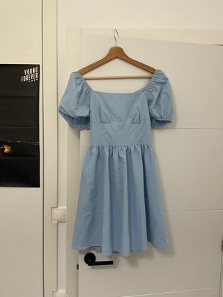 Vestido estilo coquette en color azul. Presenta un diseño con mangas abullonadas y escote cuadrado. - Mangas abullonadas - Escote cuadrado - Cintura marcada - Falda con vuelo