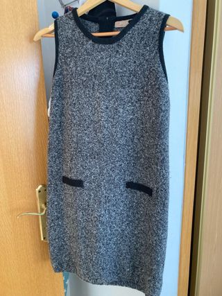 Vestido de invierno estilo pichi, ideal para combinar con blusas o camisetas. - Diseño sin mangas. - Detalle de bolsillos delanteros. - Acabado en tejido jaspeado. -Calentito