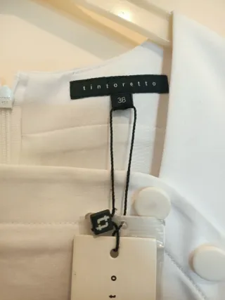 Vestido elegante de la marca Tintoretto. - Color blanco. - Talla 36 (S). - Diseño moderno.