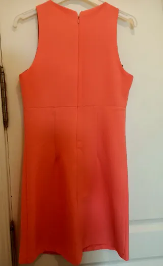 Vestido corto de color rojo, ideal para cualquier ocasión. Es un poco grande para ser una S - Diseño con escote cuadrado. - Cremallera frontal dorada. - Mangas cortas. - Falda con vuelo.