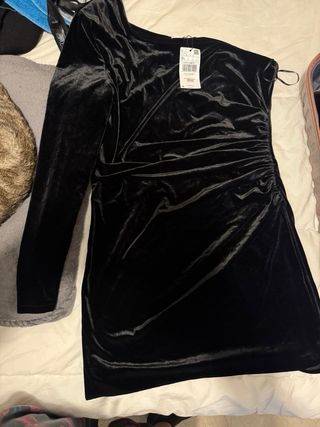 Vestido de terciopelo negro de Mango. - Tejido suave y brillante. - Diseño elegante.