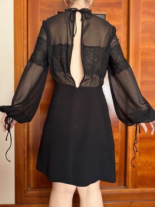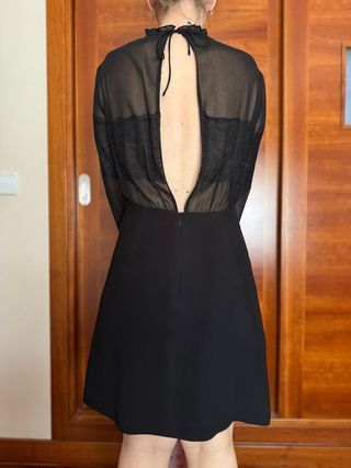Vestido lencero de Mango con un diseño elegante y sensual. - Transparencias en la parte superior. - Detalle de encaje. - Espalda descubierta con lazada. - Cremallera oculta.