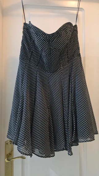 Vestido corto de Zara con estampado de lunares. - Diseño sin tirantes. - Falda con vuelo.