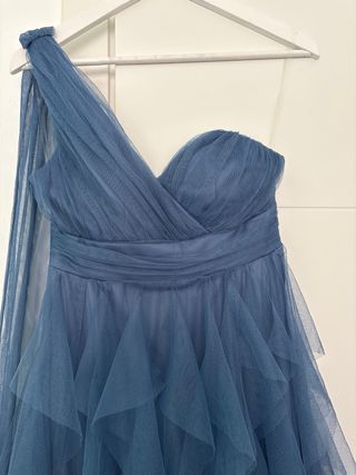 Vestido azul de fiesta/graduación/boda con volante