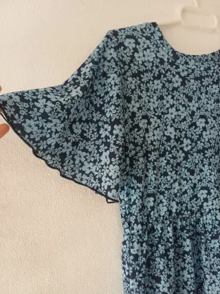 Vestido floral azul y negro Talla S
