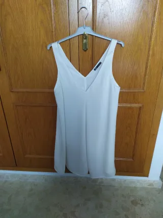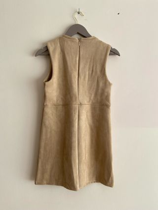 Vestido de Mango en color beige. Diseño sin mangas y con cremallera en la espalda, con corte recto y de ante. Medidas: 33 cm en hombros / 40 cm en axila y en cintura / 79 cm de largo.