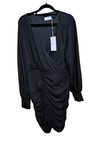 Precioso vestido negro de la marca VILA, nuevo con etiqueta, con un diseño ultra favorecedor y muy cómodo. El tejido tiene un relieve fino y elegante, y además es súper elástico, adaptándose perfectamente a la figura sin marcar, aportando comodidad y estilo a la vez. Lleva forro interior suave y elástico, por lo que no transparenta nada y queda precioso puesto. El escote cruzado en “V” estiliza muchísimo la parte superior, y la zona fruncida delantera y trasera realza la silueta y disimula cualquier zona que no quieras marcar. da hasta una talla 52/54 Síguenos @elarmarioymas