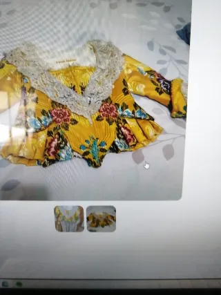 Vestido de fallera con un diseño vibrante y detallado. - Tejido con estampado floral. - Cuello adornado con encaje. - Mangas largas con puños de encaje. De seda para niña d e8 años 8 o 7 se puede ehabalr de precio