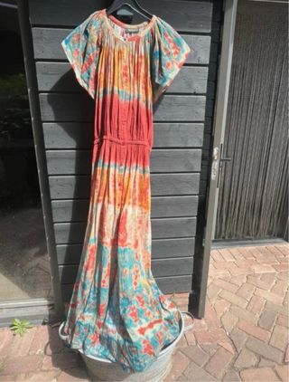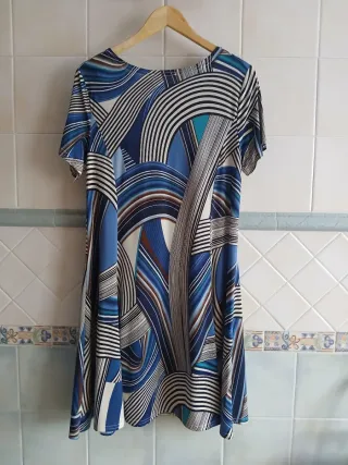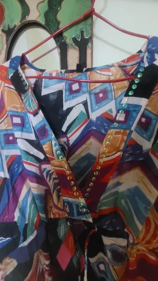 Vestido de color vistoso, botones de arriba a abajo para poder ajustar a tu estilo. Talla 42, es para llevar amplio como es la marca de Mes 🥰, de algodón.