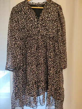 Vestido informal con un bonito estampado floral. - Diseño con cuello en V. - Mangas largas. - Volante en el bajo. Usado dos meses como premamá