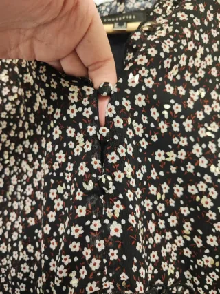 Vestido de Zara con estampado floral. - Manga corta. - Escote en V. - Detalle de encaje en el bajo y en las mangas