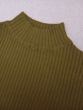 Vestido de punto ajustado con cuello alto. - Diseño de canalé. - Manga larga. - Largo hasta la rodilla.
