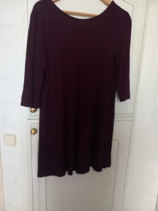 Vestido de manga tres cuartos. - Color granate intenso. - Corte holgado y cómodo.