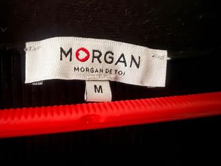 Vestido de punto ajustado de la marca Morgan. Diseño elegante y moderno. - Cuello en V con tiras. - Cierre de botones nacarados. - Manga larga. - Tejido elástico acanalado.