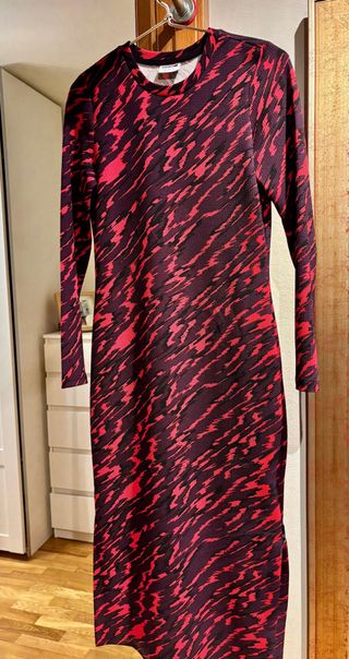Vestido de manga larga con un bonito estampado. - Diseño con cuello redondo. - Mangas largas con detalle en los puños. - De telaa fina.