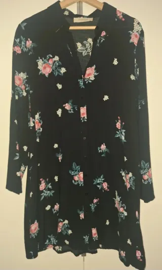 Vestido camisero Promod floral negro talla M