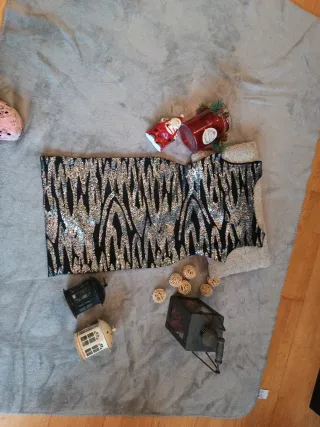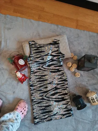 Vestido corto con lentejuelas brillantes que capturan la luz.Talla M pero es holgado, sólo puesto un día. - Diseño de manga corta. - Acabado con lentejuelas. - Estilo llamativo y festivo.