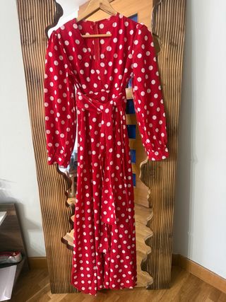 Vestido rojo lunares blanco