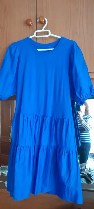 Vestido azul volantes talla única