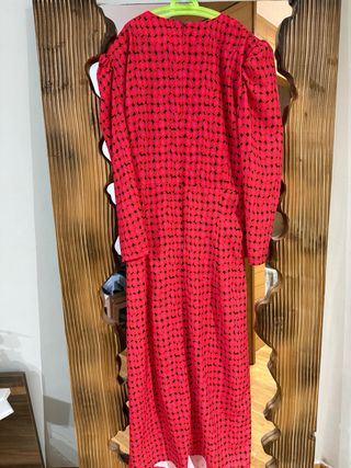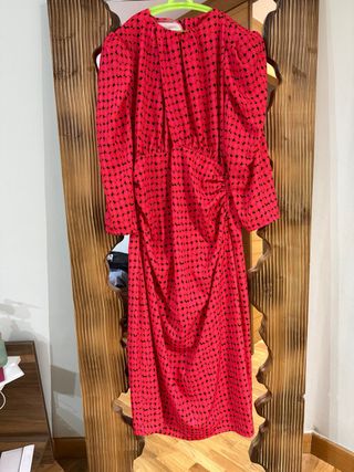 Vestido de Zara con estampado de lunares. - Diseño con manga larga. - Detalle fruncido en la cintura. - Falda con vuelo.