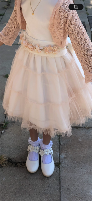 Precioso vestido de comunión con detalles en rosa y blanco. Ideal para una ocasión especial.lo dejo con la tolera - Diseño con varias capas de tul. - Cinturón adornado con flores. - Incluye chaqueta - Zapatos a juego con calcetines.