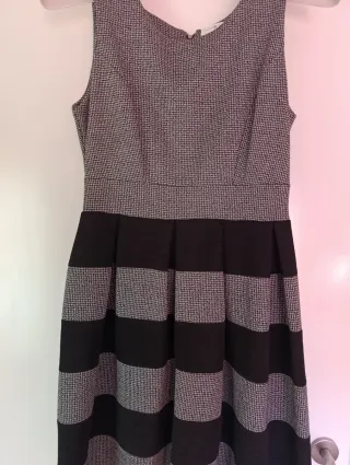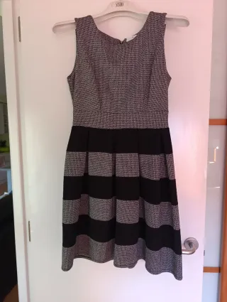 Vestido elegante sin mangas. - Diseño de corte A. - Tejido con textura. - Apertira redondeada en la espalda. Muy poco uso. Lo vendo porque me va pequeño. Medidas en las fotos. Hago envíos.