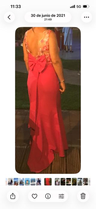 Vestido largo de fiesta en tono rosa vibrante, con un elegante lazo en la espalda. - Diseño con escote pronunciado en la espalda. - Detalle de lazo grande en la cintura. - Falda con corte sirena y caída. - Tejido con aplicaciones florales en la parte superior.
