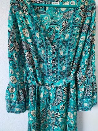 Vestido largo con un bonito estampado paisley. - Diseño de manga larga. - Cuello camisero. - Cierre de botones.t