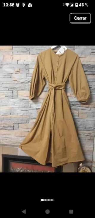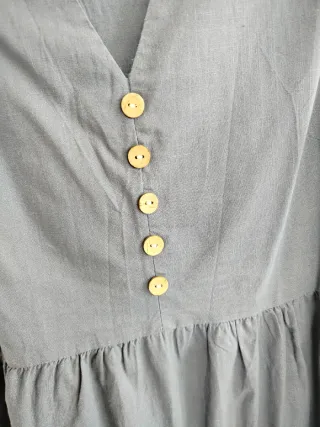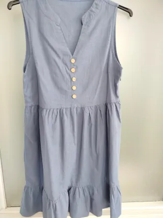 Vestido de verano sin mangas, confeccionado en 100% algodón. Presenta un diseño con cuello en V y botones de madera en la parte delantera. La falda tiene un volante en el bajo. - Material: 100% algodón. - Diseño sin mangas. Cremallera lateral - Cuello en V con botones. - Volante en el bajo. TallsS pero es amplio vale M Ancho sisa 45cm Largo total 85